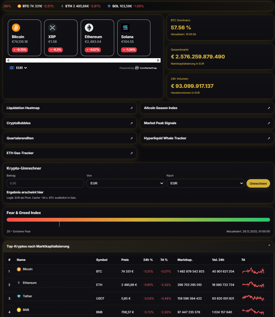 Diese Seite zeigt dir die typische Reise einer Person, die Krypto zuerst verstehen und erst danach investieren will. Jeder Schritt öffnet ein eigenes Tool und baut logisch auf dem davor auf.